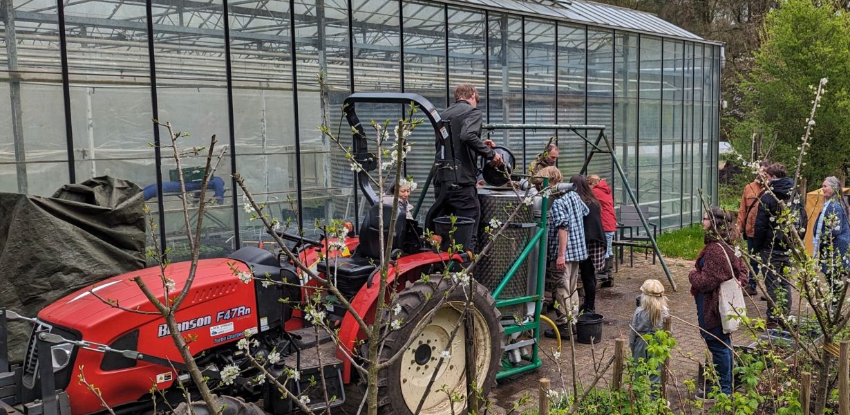 ’s Middags mogen we met Konrad mee voor een rondleiding. 25 jaar geleden is de boerderij gekocht van een weduwe en omgebouwd tot wat het nu is. Er wonen 16 mensen en er komen nog eens 10 mensen elke dag werken. Een klein doolhof waar ik na twee dagen de weg begin te vinden. We mogen in Silka haar kamer kijken. Miran ziet een mooie pop in bed liggen en Martijn wordt gegrepen door een Maria afbeelding op antroposofische wijze geschilderd. Aachim woont er ook met zijn vrouw en twee kinderen. Ik kom Alfa tegen in de grote kas en we bekijken de wintergroente: veldsla, rucola en spinazie. Buiten is Olivier met een trekker in de weer, Aachim staat wat te doen in de werkplaats. Julia en Johannes schilderen in het schildersatelier, de fruitbomen staan in de knop, de mist verhindert ons het zicht maar maakt er een sfeervol winterplaatje van. Maria schenkt koffie, iedereen werkt, loopt rond, praat en speelt ……… een plek waar je wil zijn!!!